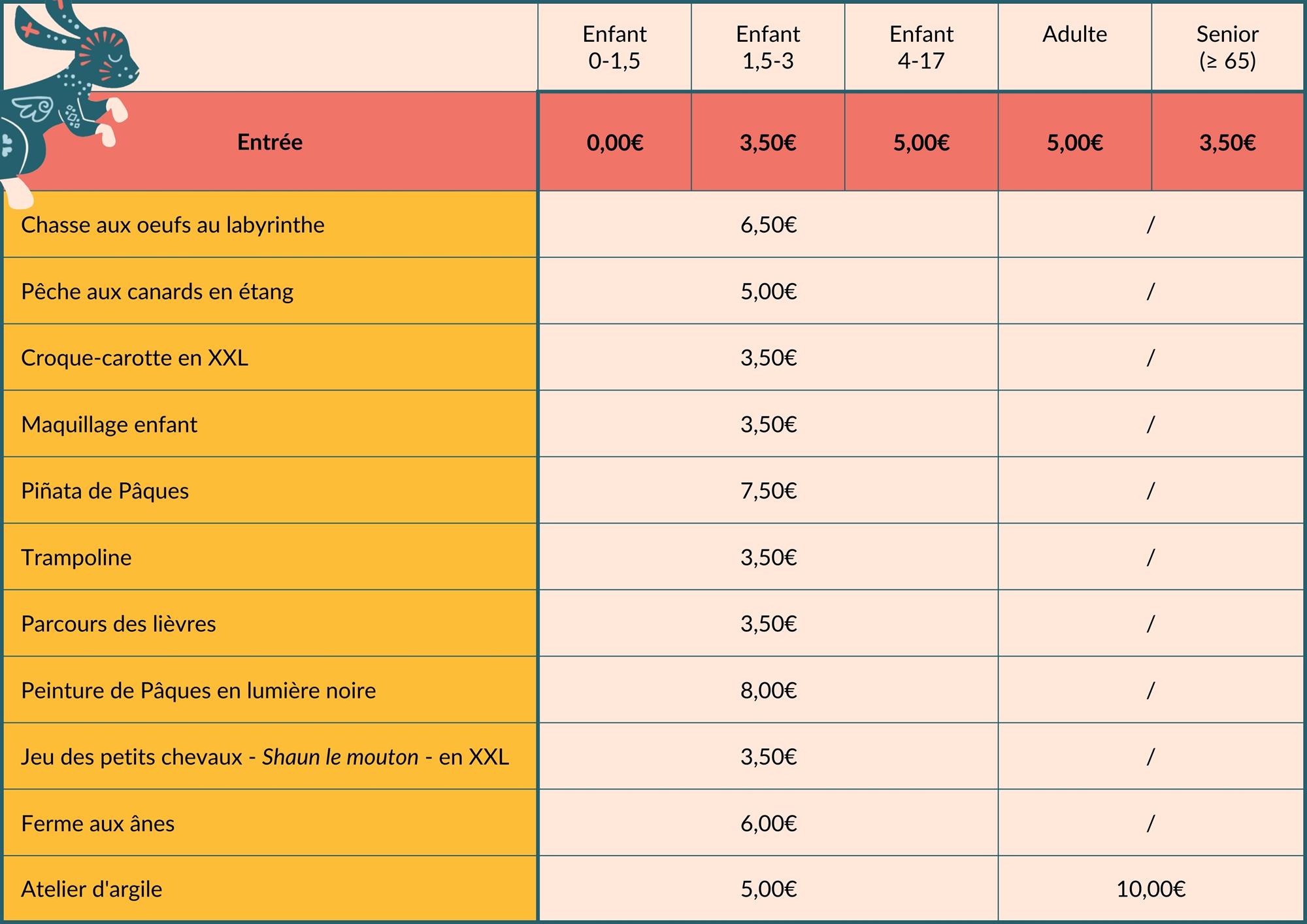 - Atelier d'argile : Encadrés par l’équipe « Ouri-Team », les petits créent des lapins de Pâques en argile. L'argile non cuite peut soit être emportée à la maison pour sécher, soit être cuite à Lullange et récupérée ultérieurement.